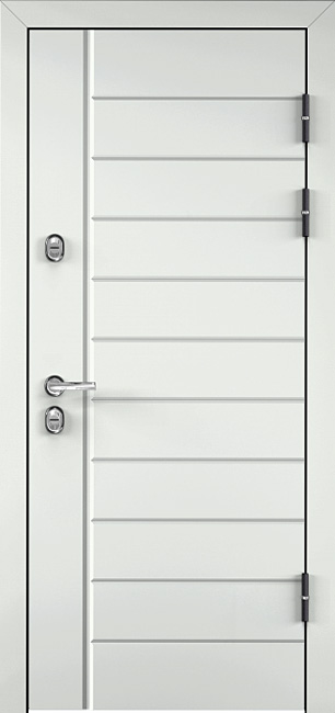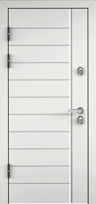 Эта белоснежная входная дверь с линиями №30 станет стильным и надежным элементом для любого интерьера. Благодаря отделке из панелей МДФ с ПВХ-покрытием, дверь выглядит элегантно и обладает высокой устойчивостью к внешним повреждениям. Внешний вид дверного полотна дополнен утонченными линиями, что придает ей современный, лаконичный вид. Прочный каркас из профильных труб 50х25 мм и лист металла толщиной 2 мм обеспечивают отличную защиту и долгий срок службы. Два контура резинового уплотнителя эффективно защищают от шума и холода, создавая комфорт в помещении. Замки Просам и Мосрентген с тремя ригелями гарантируют надежную безопасность. Дополнительно можно заказать зеркала, стеклопакеты и кованые элементы, что делает дверь универсальной для разных дизайнерских решений. Квартирная дверь входная белоснежного цвета с линиями №30 от производителя: быстрое изготовление и монтаж в Октябрьском, индивидуальные размеры, широкий выбор материалов и фурнитуры, официальная гарантия до 10 лет.