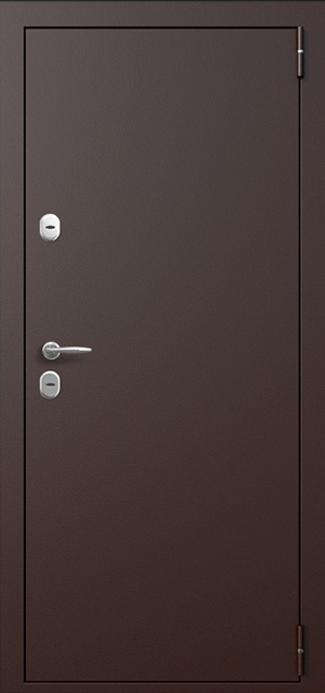 Входная дверь на дачу металлическая №24 идеально подходит для установки в частном доме, квартире или офисе. Внешняя отделка с порошковым термонапылением обеспечивает устойчивость к внешним воздействиям, а внутренняя отделка из МДФ придает двери стильный и современный вид. Конструкция из оцинкованной стали толщиной 2 мм и усиленная ребрами жесткости (профильные трубы 40х25 мм) гарантирует долговечность и безопасность. Дверь оснащена двумя надежными замками: сувальдным «Просам» и цилиндровым «Мосрентген», оба с тремя ригелями для лучшей защиты. Внутри установлены блокираторы против снятия и качественное уплотнение, обеспечивающее отличную тепло- и шумоизоляцию. Возможность добавить зеркало, стеклопакет или кованые элементы позволяет адаптировать дверь под любые предпочтения. Входная дверь на дачу металлическая №24 от производителя: быстрое изготовление и монтаж в Октябрьском, индивидуальные размеры, широкий выбор материалов и фурнитуры, официальная гарантия до 10 лет.