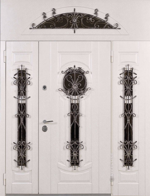 Входная дверь с кованой ручкой и фрамугой №6 представляет собой элегантное и надежное решение для тех, кто ценит не только безопасность, но и стиль. Эта модель идеально подойдет для оформления парадных входов в дома и офисы. Внешняя отделка из плиты МДФ придает двери современный и чистый вид, который сохраняется долго благодаря стойкости к внешним воздействиям. Благодаря профильной трубе с толщиной металла 2 мм и ребрам жесткости, конструкция двери гарантирует прочность и долговечность. Дополнительный элемент — кованая ручка, которая добавляет изысканности и подчеркивает высокий класс изделия. Стандартная комплектация не включает шумо- и теплоизоляцию, однако она может быть установлена по желанию. Резиновый уплотнитель с двумя контурами обеспечит хорошую герметичность, защищая от ветра и пыли. Подходит для установки как в частных домах, так и в офисах, привлекая внимание своим необычным и стильным дизайном. Входная дверь с кованой ручкой и фрамугой №6 от производителя: быстрое изготовление и монтаж в Октябрьском, индивидуальные размеры, широкий выбор материалов и фурнитуры, официальная гарантия до 10 лет.