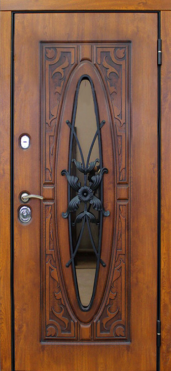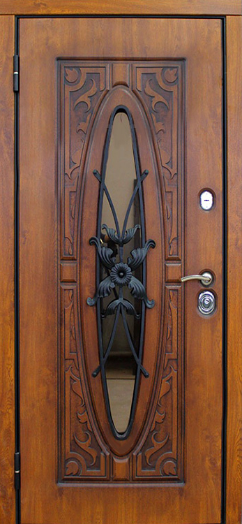 В частном доме дверь должна быть не просто барьером, а настоящей визитной карточкой, и именно эту задачу решает входная дверь со стеклом и ковкой №23. Натуральное дерево в отделке придает ей благородный и теплый вид, а декоративная ковка превращает конструкцию в выразительный элемент архитектуры. Внутри скрыт стальной каркас с листом металла 1,5 мм и противосъёмными блокираторами, что обеспечивает прочность и устойчивость к взлому. Особого внимания заслуживает наличие терморазрыва как в коробке, так и в полотне: он защищает от промерзания, исключает появление конденсата и помогает сохранять тепло зимой и прохладу летом. Тройной контур магнитного уплотнения усиливает герметичность и снижает уровень уличного шума, а пенопласт повышенной плотности в качестве наполнителя добавляет теплоизоляции. Входная дверь в частный дом со стеклом и ковкой №23 гармонично сочетает надежность и эстетику, позволяя владельцу адаптировать её под стиль фасада с помощью дополнительных декоративных решений. Входная дверь в частный дом со стеклом и ковкой №23 от производителя: быстрое изготовление и монтаж в Октябрьском, индивидуальные размеры, широкий выбор материалов и фурнитуры, официальная гарантия до 10 лет.
