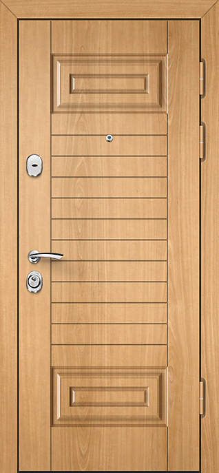 Металлическая конструкция с листом стали толщиной 2 мм и жёстким каркасом из профильной трубы формирует основу, которая не подведёт ни в квартире, ни в офисе. Два контура резинового уплотнителя делают закрывание плотным, уменьшая шум и сквозняки, а наличие блокираторов повышает уровень безопасности. Внешняя и внутренняя отделка выполнена из МДФ ПВХ — материал прочный, устойчивый к мелким повреждениям и сохраняющий аккуратный вид при ежедневной эксплуатации. В центре внимания здесь Железная дверь в квартиру №78, сочетающая надёжность стали и декоративные возможности панелей, которые можно комбинировать по вкусу. Комплект замков представлен сувальдным Просам и цилиндровым Мосрентген, при этом доступна замена на более сложные механизмы вплоть до биометрических систем. Конструкцию легко дополнить зеркалом, стеклопакетом, коваными элементами или видеодомофоном, превратив строгую дверь в удобный и технологичный элемент современного жилья. Железная дверь в квартиру №78 от производителя: быстрое изготовление и монтаж в Октябрьском, индивидуальные размеры, широкий выбор материалов и фурнитуры, официальная гарантия до 10 лет.