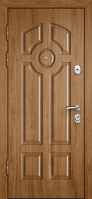 Филёнчатая отделка всегда придаёт дверному полотну особый шарм, создавая эффект глубины и аккуратного рельефа. Входная дверь МДФ с внешней панелью под филёнку №537 универсальна и одинаково хорошо смотрится на фасаде частного дома, в офисе или в квартире. Отделка из МДФ-плиты устойчива к мелким повреждениям, не выгорает и сохраняет аккуратный вид при ежедневной эксплуатации, а при необходимости легко комбинируется с другими декоративными элементами. В основе конструкции — каркас из профильной трубы, лист стали толщиной 2 мм и рёбра жёсткости, обеспечивающие надёжность и жёсткость всей системы. Для удобства и безопасности предусмотрены два замка: сувальдный Просам и цилиндровый Мосрентген. Два контура уплотнения повышают комфорт эксплуатации, а при желании дверь можно дополнить зеркалом, стеклопакетом или коваными вставками, сделав её не только прочной, но и выразительной частью интерьера. Входная дверь МДФ и внешней панелью под филенку №537 от производителя: быстрое изготовление и монтаж в Октябрьском, индивидуальные размеры, широкий выбор материалов и фурнитуры, официальная гарантия до 10 лет.