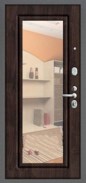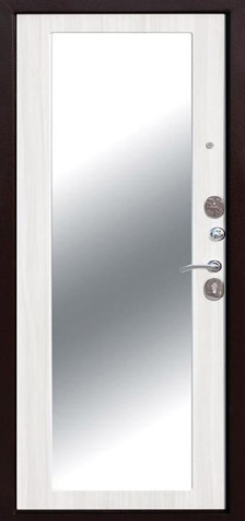 Каркас из профильной трубы и стальной лист толщиной 2 мм обеспечивают прочность конструкции и устойчивость к взлому, а два контура уплотнителей защищают помещение от сквозняков и уличного шума. Входная дверь в квартиру с зеркалом №10 выделяется сочетанием практичного молоткового напыления снаружи и аккуратной плиты МДФ внутри. Такое покрытие не боится механических повреждений и перепадов температуры, долго сохраняя первоначальный вид. Зеркало на внутренней стороне делает прихожую светлее и визуально просторнее, заменяя полноценное настенное. Дополнительные блокираторы и система ребер жёсткости усиливают надежность. Возможность изготовления в любых размерах позволяет адаптировать модель под особенности квартиры, офиса или частного дома, сохранив баланс между эстетикой и безопасностью. Входная дверь в квартиру с зеркалом №10 от производителя: быстрое изготовление и монтаж в Октябрьском, индивидуальные размеры, широкий выбор материалов и фурнитуры, официальная гарантия до 10 лет.