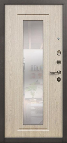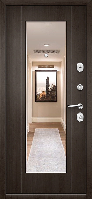 Входная дверь с зеркалом внутри №71 удачно сочетает практичность и надежность, оставаясь при этом стильным элементом интерьера. Она подходит для квартиры, офиса или частного дома, создавая удобство в быту и подчеркивая статус владельца. Внешняя сторона покрыта порошковой окраской, устойчивой к царапинам и перепадам температуры, что гарантирует долговечность и сохранение привлекательного вида. Внутри установлена накладка из МДФ, которая придает поверхности уют и делает её гармоничной частью интерьера. Зеркало на внутренней стороне экономит пространство прихожей и добавляет ей визуальной глубины. Каркас из профильной трубы с листом стали толщиной 2 мм и ребрами жесткости обеспечивает прочность и устойчивость ко взлому. Два контура уплотнителей создают дополнительную защиту от сквозняков и пыли, а терморазрыв в коробке и полотне предотвращает промерзание зимой. Для безопасности предусмотрены два замка российского производства с ригельными системами, при желании возможна замена на замки премиальных марок или установка умных электронных решений. Дверь входная с зеркалом внутри №71 от производителя: быстрое изготовление и монтаж в Октябрьском, индивидуальные размеры, широкий выбор материалов и фурнитуры, официальная гарантия до 10 лет.