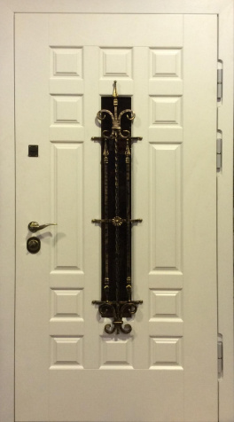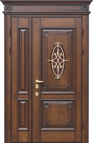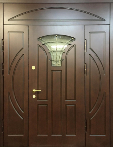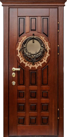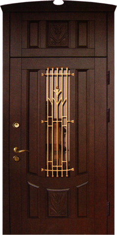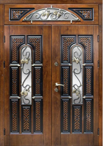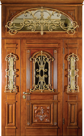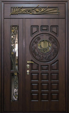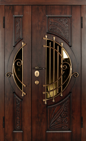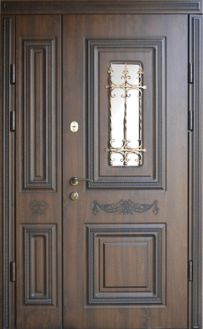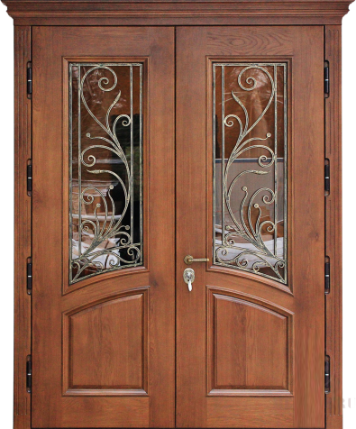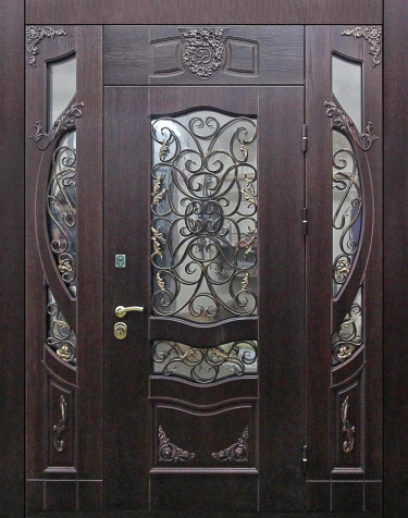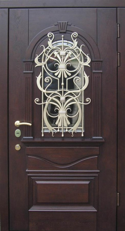 Дверь с надежной фурнитурой и коваными элементами на стекле №18