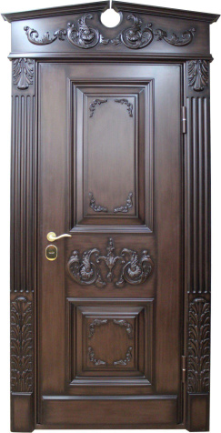 Эксклюзивная глянцевая дверь в частный дом с нестандартной фрезеровкой №24