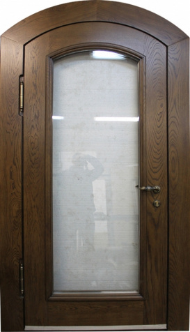 Морозостойкая дверь в широкий проем с глухим полотном стеклом и ковкой №30