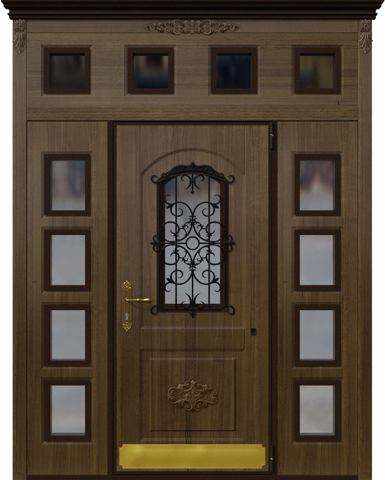 Эта модель выделяется своим масштабом и декоративностью: двухстворчатая дверь со вставками и ковкой №2 подчеркивает парадность входа и придает фасаду респектабельность. Основу составляет прочный каркас из стальных профильных труб с листом металла толщиной 2 мм и ребрами жесткости, что обеспечивает долговечность и защиту. Снаружи и внутри полотно облицовано накладками МДФ, которые позволяют воплотить различные варианты текстур и оттенков, сохраняя устойчивость к механическим повреждениям и влиянию внешней среды. Кованые элементы вносят в образ двери нотку изысканности и индивидуальности, делая ее центральным акцентом всего фасада. Для безопасности предусмотрены два замка турецкого производителя Kale Kilit — цилиндровый и сувальдный, каждый с ригелями, усиливающими защиту. Такая дверь сочетает надежность металлической конструкции с эстетикой классического дизайна, превращая вход в настоящий архитектурный акцент. Двухстворчатая дверь со вставками и ковкой №2 от производителя: быстрое изготовление и монтаж в Октябрьском, индивидуальные размеры, широкий выбор материалов и фурнитуры, официальная гарантия до 10 лет.