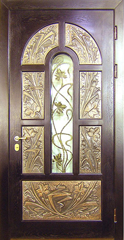 Дверь с надежной фурнитурой и коваными элементами на стекле №18